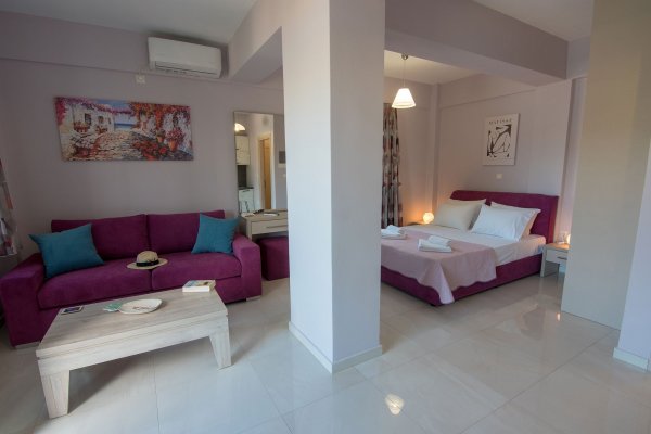 Το διαμέρισμα με το όνομα του αρχαίου Έλληνα επικού ποιητή και δημιουργού της έντεχνης Ευρωπαϊκής και Ελληνικής λογοτεχνίας βρίσκεται στο ισόγειο. Αποτελείται από ένα υπνοδωμάτιο με υπέρδιπλο κρεβάτι (King size), ένα ευρύχωρο σαλόνι, έχει αρίστης ποιότητας ιματισμό, μεγάλη ντουλάπα, δύο τηλεοράσεις και δύο κλιματιστικά. Ένα άνετο μπάνιο με ντουζιέρα και πλυντήριο ρούχων. Ανοιχτή κουζίνα - τραπεζαρία - καθιστικό.